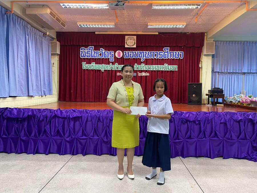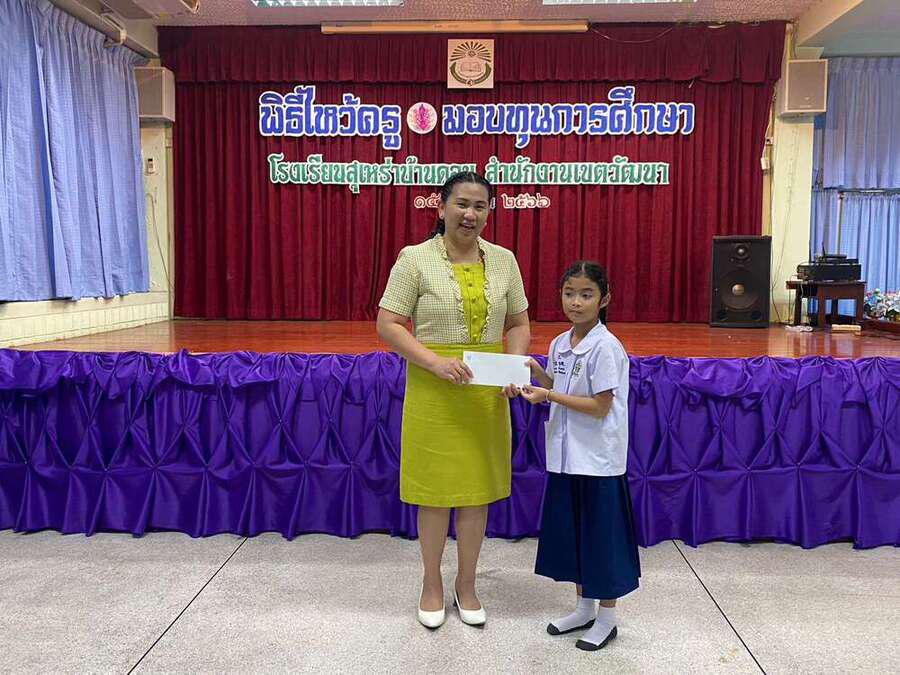 วันพฤหัสบดีที่ 15 มิถุนายน 2566 นางสาวสุทธิรัตน์ ฉัตรทิพา ผู้อำนวยการสถานศึกษา โรงเรียนสุเหร่าบ้านดอน เป็นประธานในพิธีมอบทุนการศึกษา ให้กับนักเรียนทุกระดับชั้น ทางโรงเรียนขอขอบพระคุณผู้ใหญ่ใจดีทุกท่าน ที่ร่วมสนับสนุนบริจาคเงินทำบุญเพื่อสนับสนุนการศึกษาของนักเรียนโรงเรียนสุเหร่าบ้านดอน เพื่อนำไปใช้จ่ายในด้านการศึกษาต่อไป S:0
