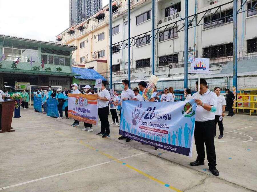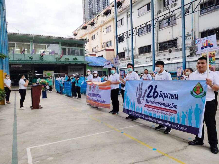 วันจันทร์ ที่ 26 มิถุนายน 2566 โรงเรียนสุเหร่าบ้านดอน (ชมรม TO BE NUMBER ONE) ร่วมกับเครือข่ายสถานศึกษา นำโดยนางสาวสุชิรา ศิลานนท์ ผู้อำนวยการเขตวัฒนา จัดกิจกรรมเดินรณรงค์ป้องกันยาเสพติดในชุมชนสุเหร่าบ้านดอน เนื่องในวันต่อต้านยาเสพติด เพื่อให้ประชาชน ชุมชน เยาวชน และหน่วยงานต่างๆ รับรู้และเห็นถึงความสำคัญในการที่จะร่วมมือเพื่อแก้ไขปัญหายาเสพติดอย่างจริงจัง S:0