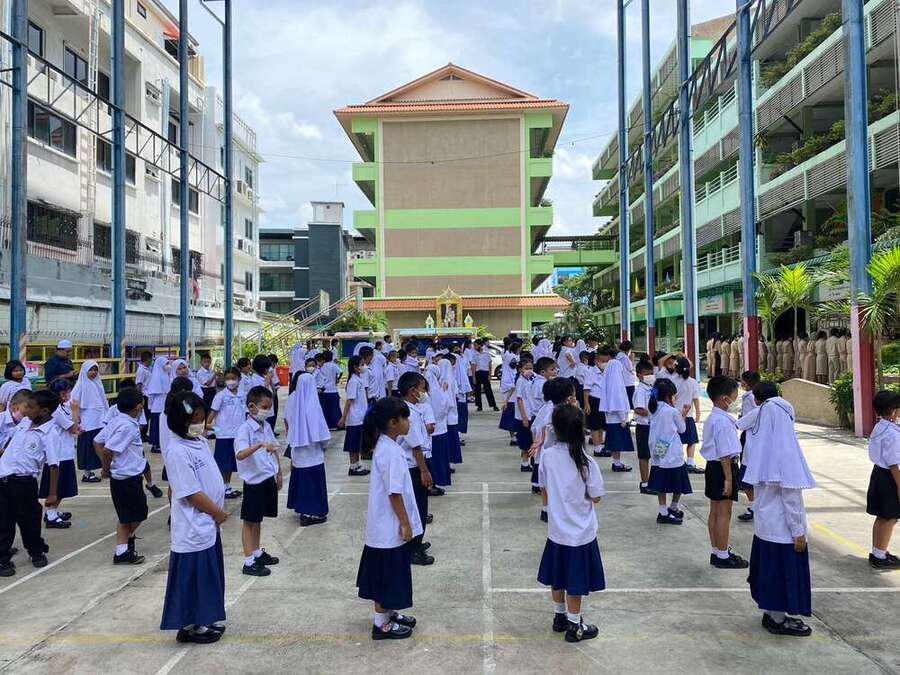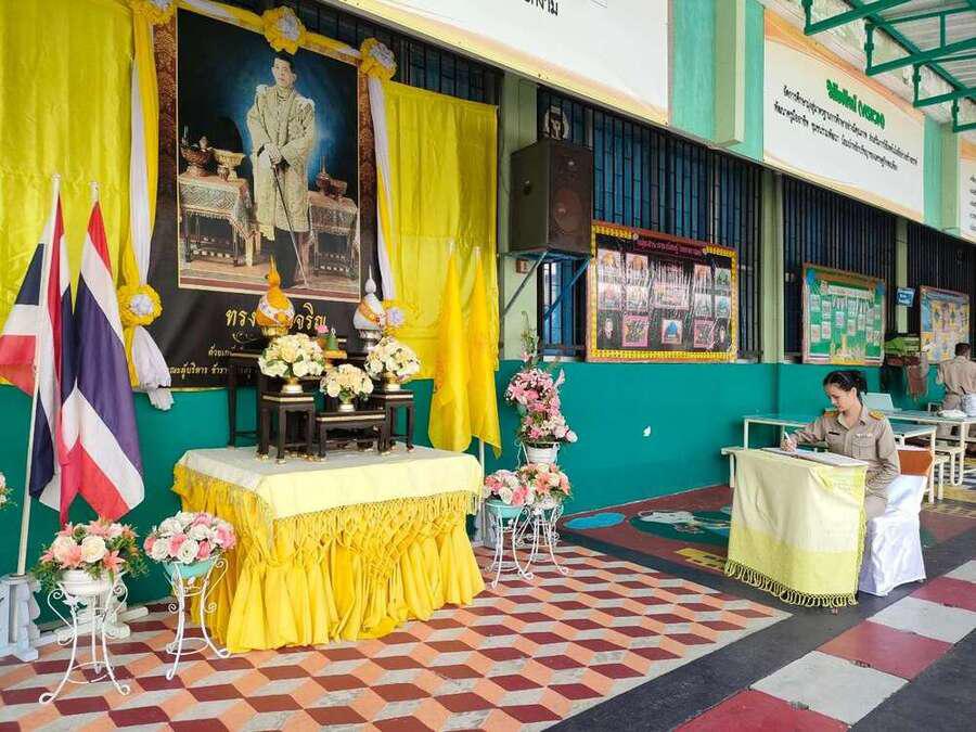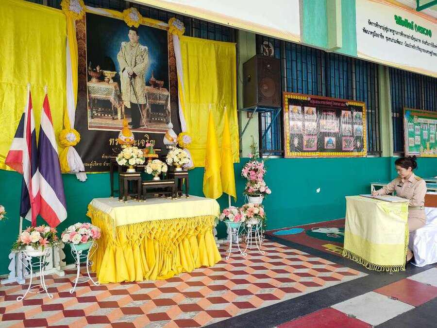 วันจันทร์ ที่ 24 กรกฎาคม 2566 นางสาวสุทธิรัตน์ ฉัตรทิพา ผู้อำนวยการสถานศึกษา โรงเรียนสุเหร่าบ้านดอน นำข้าราชการครู บุคลากรทางการศึกษา และนักเรียน ร่วมลงนามถวายพระพร พระบาทสมเด็จพระเจ้าอยู่หัว เนื่องในโอกาสวันเฉลิมพระชนมพรรษา พระบาทสมเด็จพระปรเมนทรรามาธิบดีศรีสินทรมหาวชิราลงกรณ พระวชิรเกล้าเจ้าอยู่หัว รัชกาลที่ 10 และนำข้าราชการครูและบุคร่วมพิธีถวายสัตย์ปฏิญาณเพื่อเป็นข้าราชการที่ดีและพลังของแผ่นดิน ประจำปี 2566 S:0