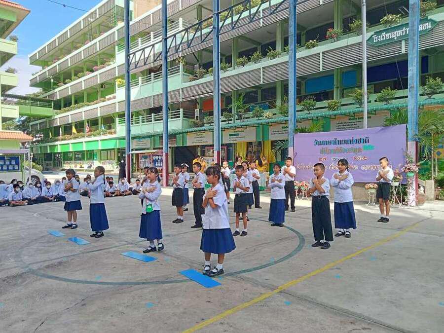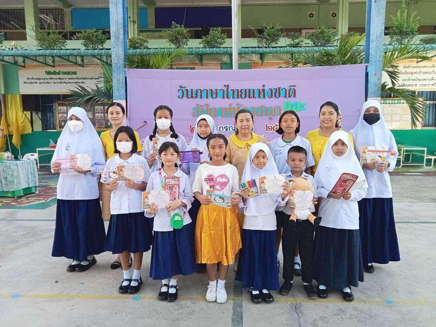 วันพฤหัสบดีที่ 27 ก.ค. 2566 โรงเรียนสุเหร่าบ้านดอน จัดกิจกรรมวันภาษาไทยแห่งชาติและสัปดาห์ห้องสมุด ซึ่งวันภาษาไทยแห่งชาติตรงกับวันที่ 29 กรกฎาคมของทุกปี คือ วันที่รำลึกถึงพระมหากรุณาธิคุณของพระบาทสมเด็จพระเจ้าอยู่หัวภูมิพลอดุลยเดช ในด้านภาษาไทย และเพื่อกระตุ้น ให้ชาวไทยทั้งชาติได้ตระหนักถึงความสำคัญและคุณค่าของภาษาไทย และร่วมใจกันใช้ภาษาไทยให้ถูกต้องเพื่ออนุรักษ์ภาษาไทยให้เป็นเอกลักษณ์อยู่คู่ชาติไทยต่อไป นักเรียนได้เข้าร่วมกิจกรรมประกวดวาดภาพระบายสี คัดลายมือ ร้องเพลงไทยลูกทุ่ง เขียนตามคำบอก ตามหาสุดยอดนักอ่าน และตอบคำถามชิงรางวัล S:0