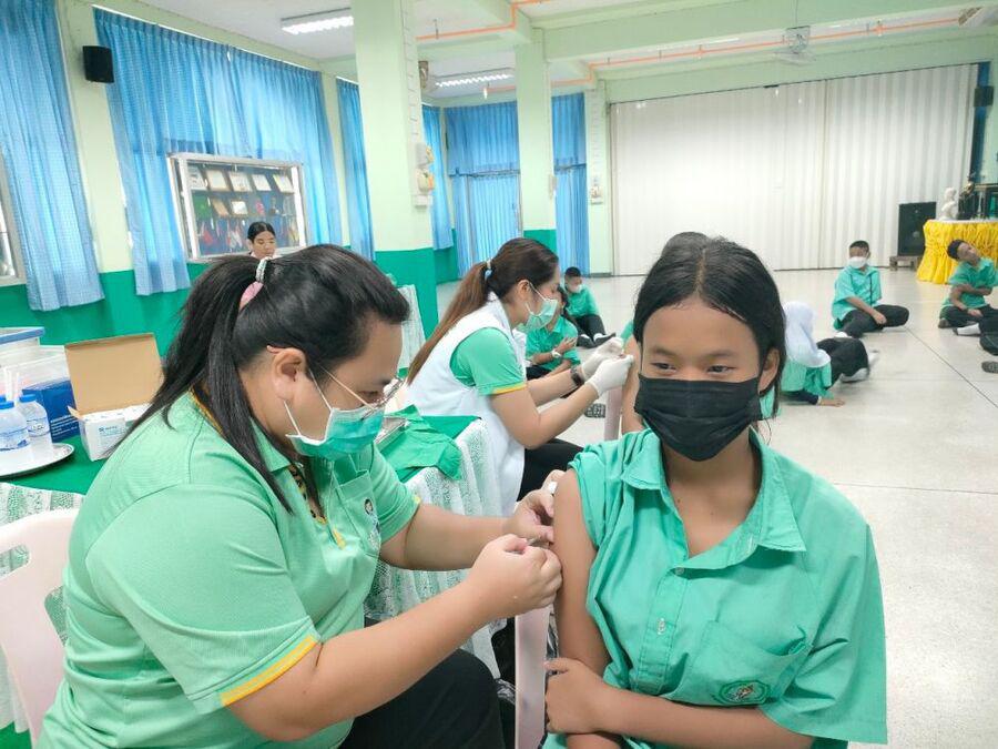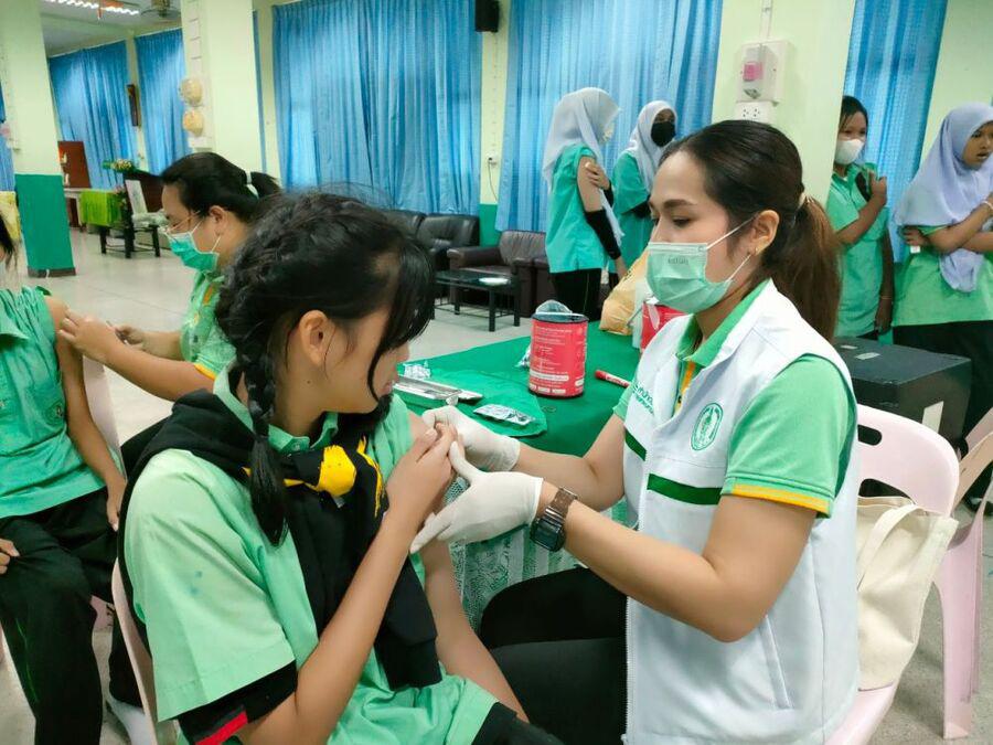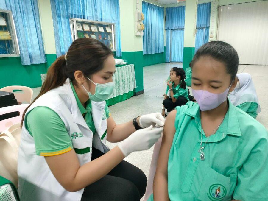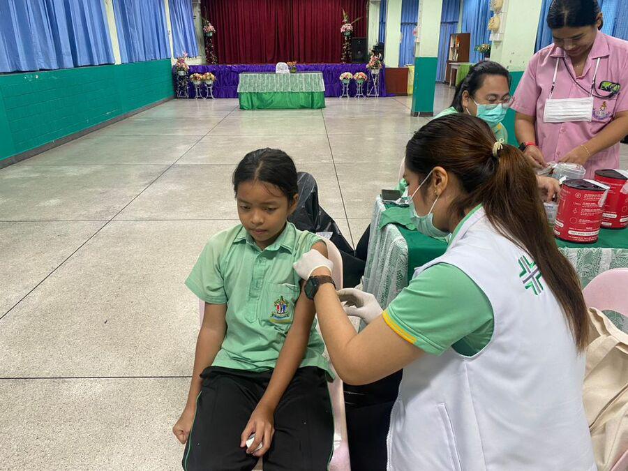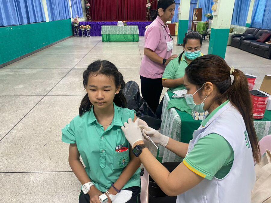 วันพุธ ที่ 6 กันยายน 2566 นักเรียนหญิงชั้นประถมศึกษาปีที่ 6 รับบริการฉีดวัคซีนป้องกันมะเร็งปากมดลูก(HPV) เข็มที่ 2 และนักเรียนหญิงชั้นมัธยมศึกษาปีที่ 1 - 2 รับบริการฉีดวัคซีนป้องกันมะเร็งปากมดลูก(HPV) เข็มที่ 1 โดยเจ้าหน้าที่สาธารณสุขศูนย์ 21 วัดธาตุทอง เพื่อป้องกันการติดไวรัส HPV ไม่เพียงแต่เป็นสาเหตุของมะเร็งปากมดลูก ยังรวมไปถึงมะเร็งช่องคลอด มะเร็งปากช่องคลอด และหูดอวัยวะเพศด้วย ดังนั้นการป้องกันโรคด้วยการฉีดวัคซีน HPV ให้ครบถ้วนตั้งแต่อายุยังน้อยย่อมช่วยให้ห่างไกลโรคได้เป็นอย่างดี S:0