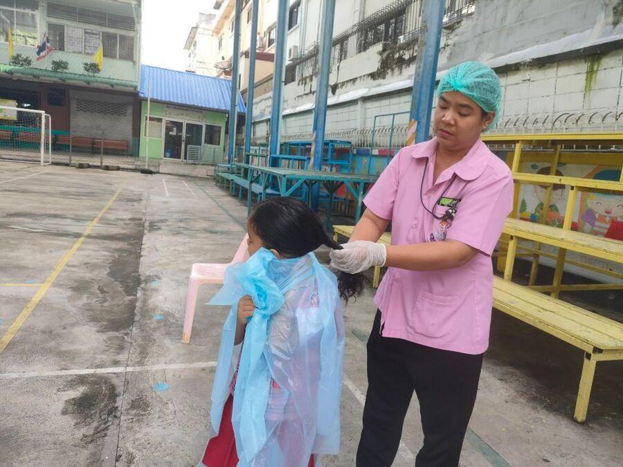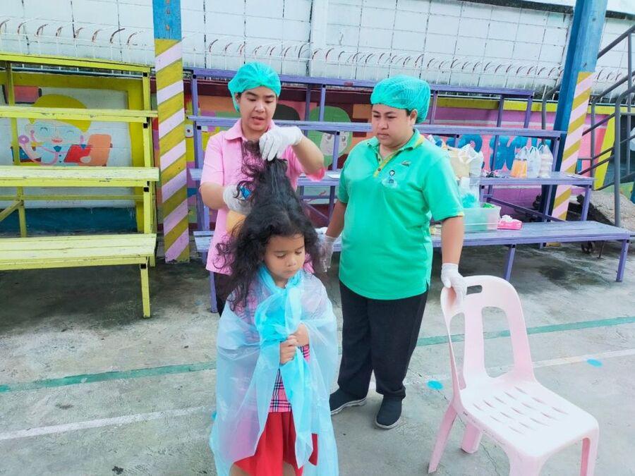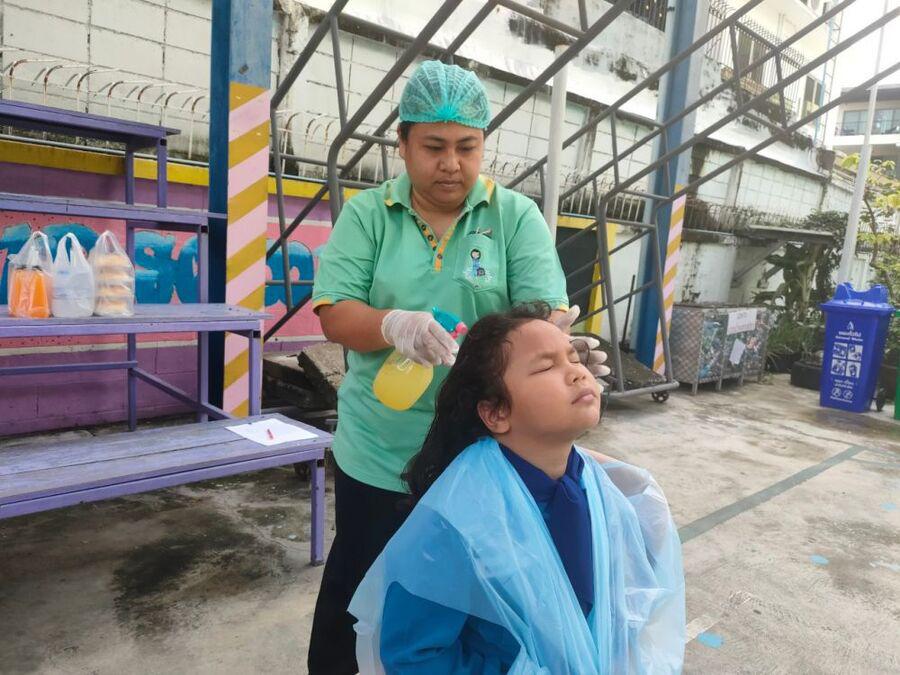 วันที่ 9 พ.ย. 2566 เจ้าหน้าที่สาธารณสุข ศูนย์บริการ 21 วัดธาตุทอง เข้ามาให้บริการ กำจัดเหา ซึ่งมีอัตราการเป็นเหาของเด็กนักเรียนหญิงค่อนข้างสูง โดยใช้น้ำส้มสายชูผสมกับน้ำมะกรูดฉีดพ่นเส้นผมและหมักไว้ เหาก่อให้เกิดอาการคันหรือเกิดตุ่มคันบนหนังศีรษะ บางรายเป็นมากและมีอาการคันรุนแรงอาจทำให้ติดเชื้อแบคทีเรียซ้ำได้ ซึ่งภาวะการเกิดเหาพบได้ทั่วไป โดยเฉพาะในบุคคลที่มีสุขอนามัยไม่ดี สามารถติดต่อระหว่างบุคคลได้ง่าย อาทิ ใช้อุปกรณ์เกี่ยวกับผมร่วมกัน เช่น หวี หมวก การสัมผัสใกล้ชิดกัน การทำกิจกรรมร่วมกัน เป็นต้น การเป็นเหาในเด็กนักเรียนนับว่าเป็นปัญหาสำคัญเนื่องจากนักเรียนจะขาดสมาธิในการเรียน และเสียบุคลิกภาพที่ดี จึงขอแนะนำผู้ปกครองดูแลสุขภาพของบุตรหลานอย่างใกล้ชิด เพื่อให้บุตรหลานปราศจากเหา มีสมาธิในการเรียน และมีบุคลิกภาพที่ดี สุขอนามัยที่ดีต่อไปค่ะ S:0