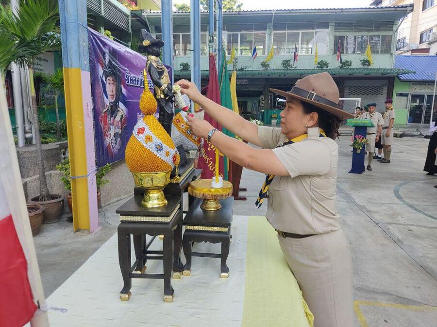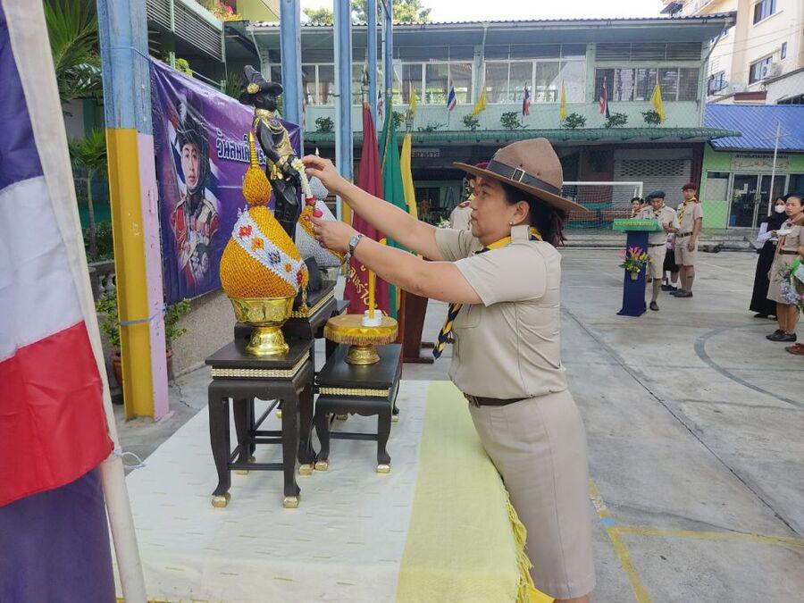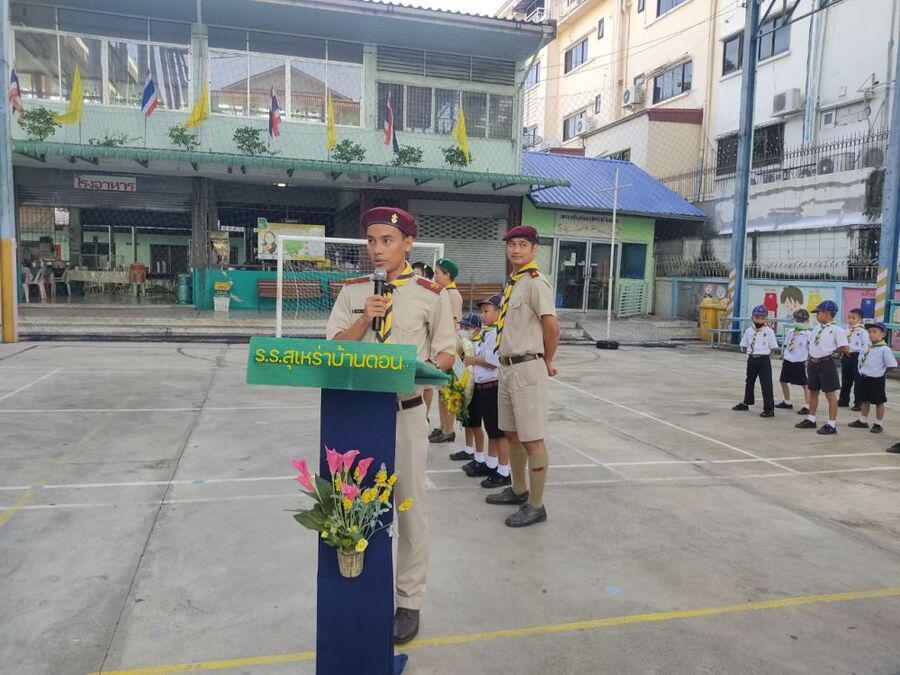 วันที่ 23 พฤศจิกายน 2566 นางสาวสุทธิรัตน์ ฉัตรทิพา ผู้อำนวยการสถานศึกษา โรงเรียนสุเหร่าบ้านดอน เป็นประธานในพิธีวางพวงมาลา เนื่องใน ?วันสมเด็จพระมหาธีรราชเจ้า? ?วันวชิราวุธ? หรือ ?วันลูกเสือไทย? ถูกกำหนดให้ตรงกับวันที่ ๒๕ พฤศจิกายน ของทุกปี เนื่องจากเป็นวันคล้ายวันสวรรคตของพระบาทสมเด็จพระมงกุฎเกล้าเจ้าอยู่หัว รัชกาลที่ ๖ หรือ ?สมเด็จพระมหาธีรราชเจ้า? เพื่อเทิดพระเกียรติและน้อมรำลึกถึงพระมหากรุณาธิคุณของพระองค์ ซึ่งทรงประกอบพระราชกรณียกิจสำคัญ อันเป็นประโยชน์มากมายมหาศาลต่อประเทศชาติ ทั้งในด้านการคมนาคม การปกครอง ด้านศิลปวัฒนธรรม และด้านวรรณคดี อีกทั้งพระองค์ยังทรงเป็นผู้ริเริ่มก่อตั้งกิจการเสือป่าและลูกเสือ เพื่อฝึกให้เยาวชนและประชาชนมีความรู้ มีมานะสามัคคี เสียสละเพื่อส่วนรวม ความสามารถในการป้องกันตัว ดูแลตัวเอง รวมถึงหมู่บ้านหรือชุมชนของตนเองได้ ภายใต้คติประจำใจของลูกเสือทุกคนว่า ?เสียชีพอย่าเสียสัตย์? นั่นเอง น้อมสำนึกในพระมหากรุณาธิคุณหาที่สุดมิได้ ข้าพระพุทธเจ้า ผู้บริหาร คณะครู บุคลากร และนักเรียนโรงเรียนสุเหร่าบ้านดอน S:0