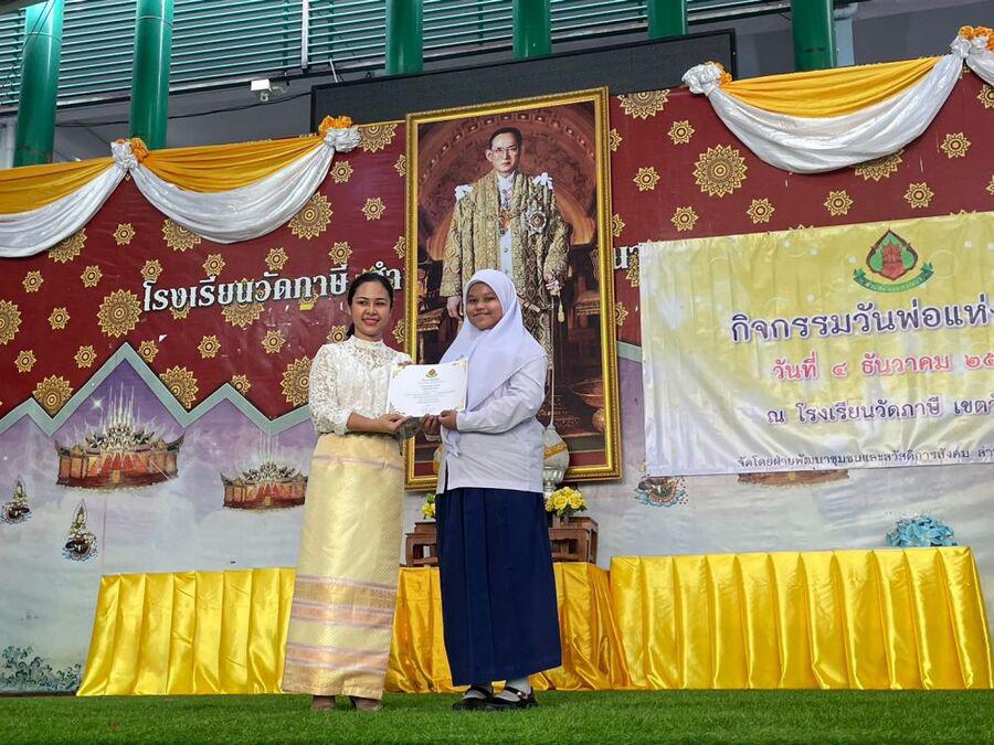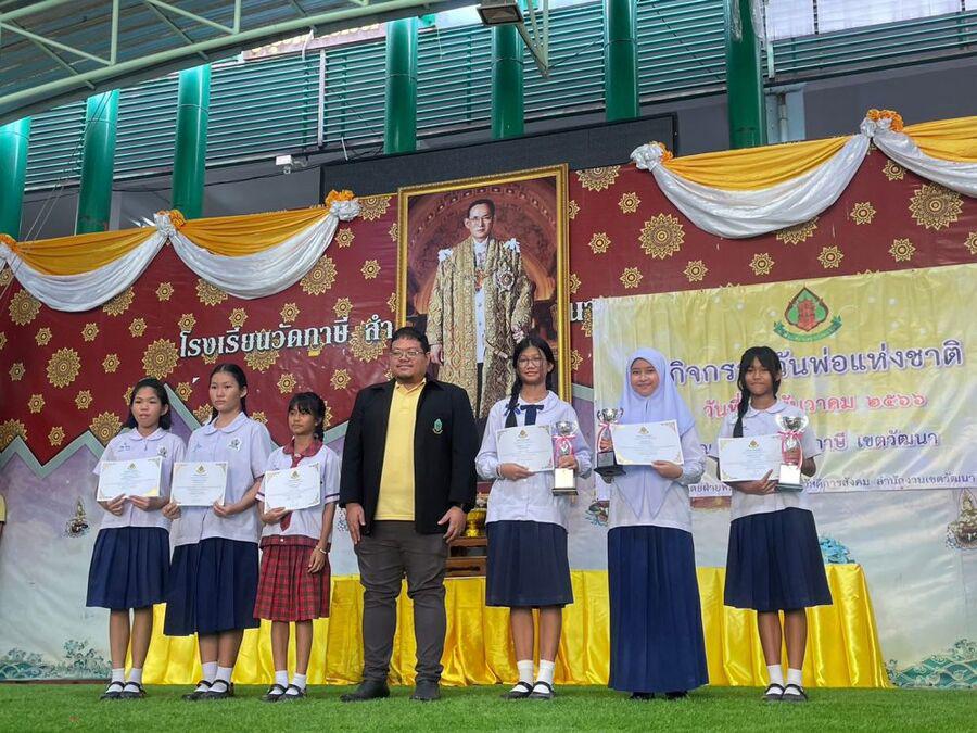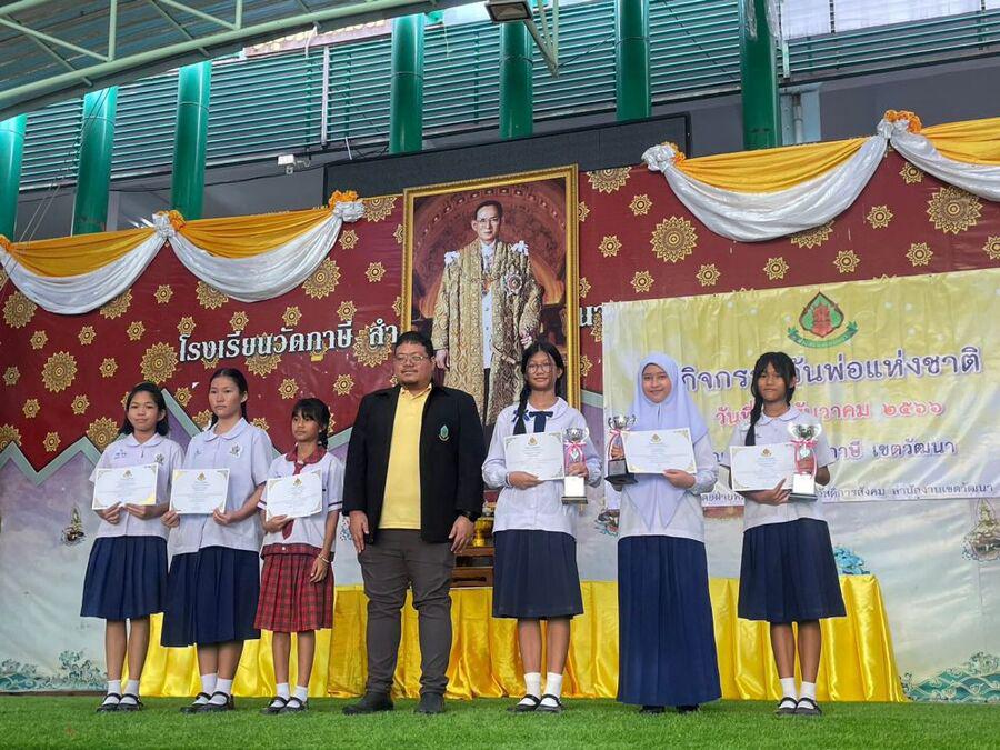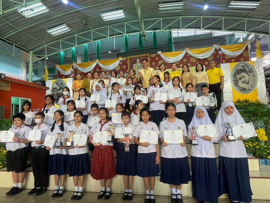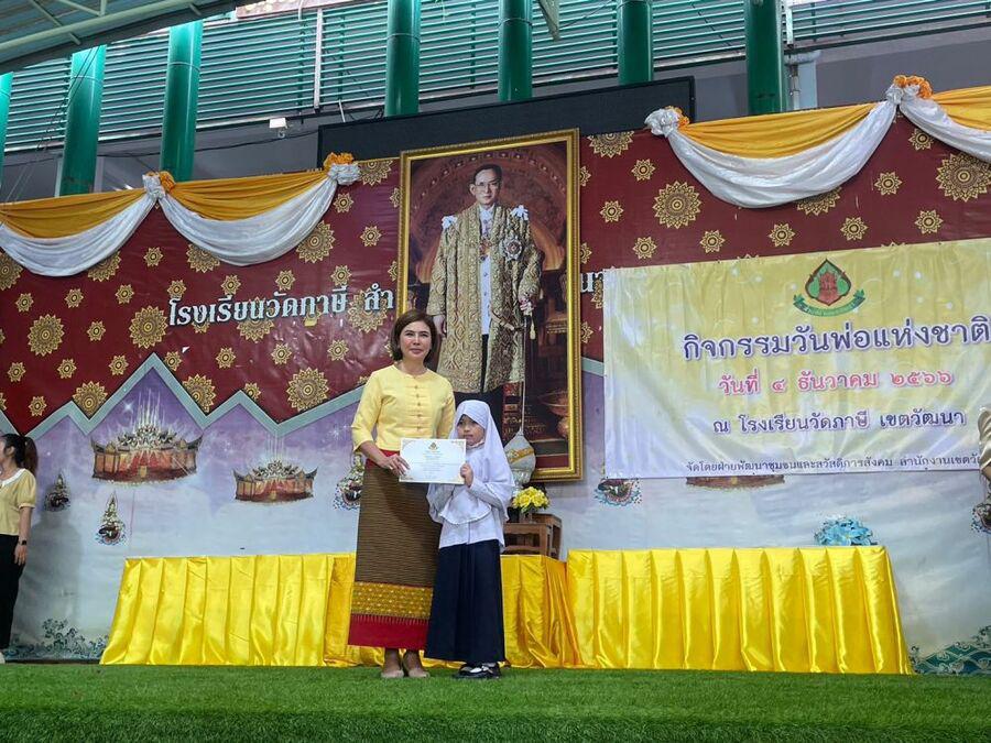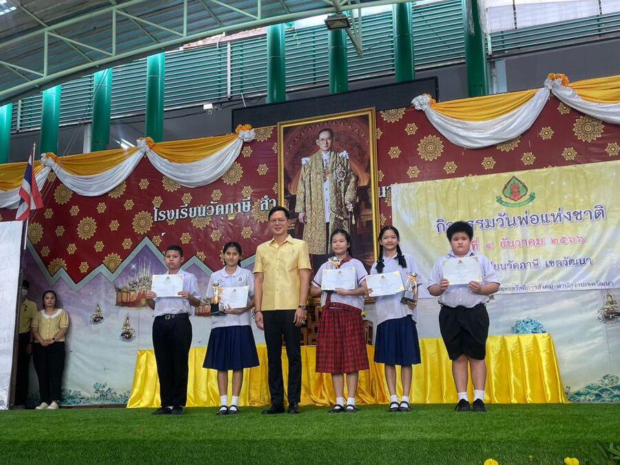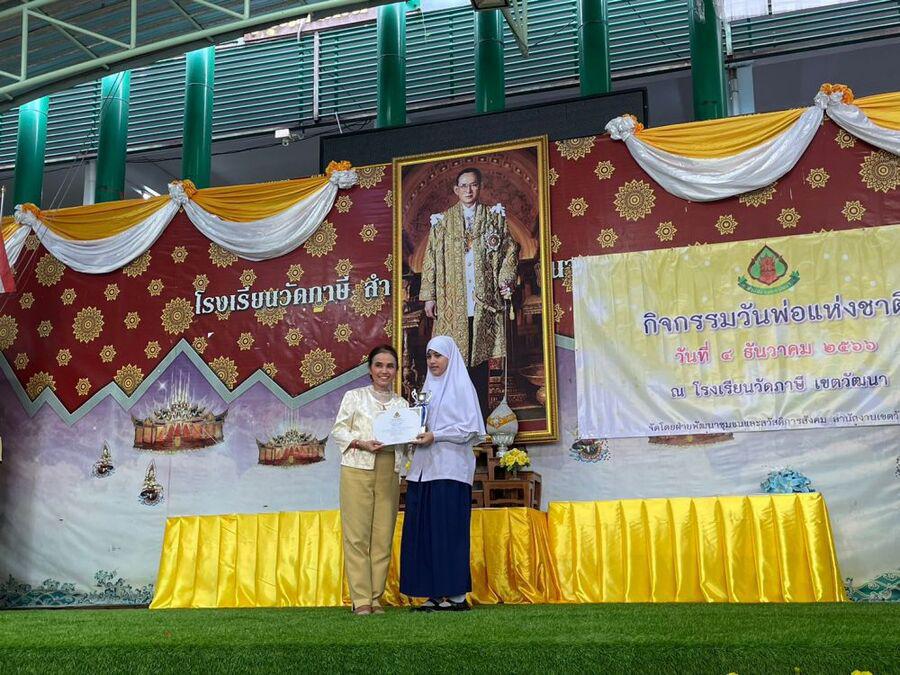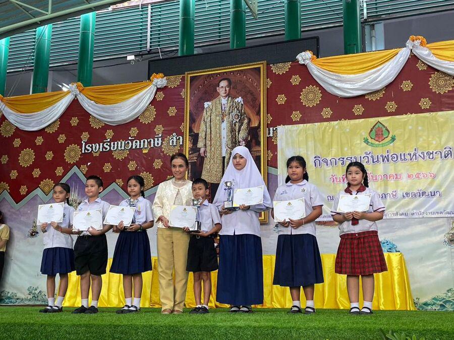 วันจันทร์ ที่ 4 ธันวาคม 2566 นางสาวสุทธิรัตน์ ฉัตรทิพา ผู้อำนวยการสถานศึกษา โรงเรียนสุเหร่าบ้านดอน พร้อมด้วยคณะครู และตัวแทนนักเรียน ที่ชนะการประกวดแข่งขัน เข้ารับถ้วยรางวัลและเกียรติบัตร จากนางสาวสุชิรา ศิลานนท์ ผู้อำนวยการเขตวัฒนา และคณะผู้บริหารเขตวัฒนา ในกิจกรรม S:0