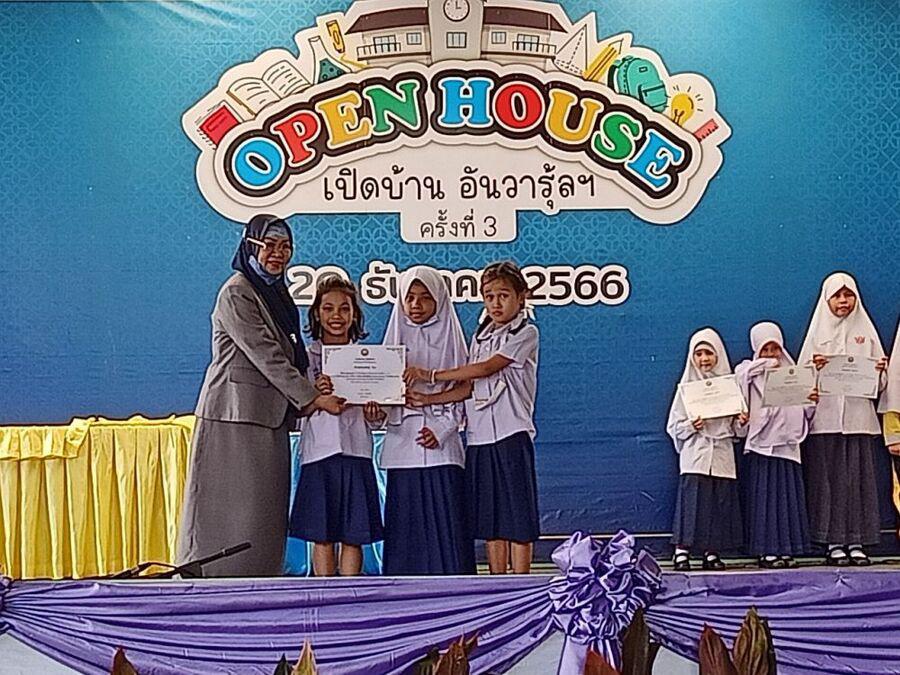 วันที่ 20 ธันวาคม 2566 คณะครูและตัวแทนนักเรียน จากโรงเรียนสุเหร่าบ้านดอน เข้าร่วมกิจกรรม แข่งขันทักษะทางวิชาการ ที่โรงเรียนอันวารุ้ลอิสลาม ในงาน Open House เปิดบ้านอันวารุ้ล ครั้งที่ 3 สรุปผลการแข่งขัน ร.ร.สุเหร่าบ้านดอน ได้รับรางวัล 2 รายการ คือ 1. ฉีก ตัด ปะ ระดับอนุบาล รางวัล รองชนะเลิศอันดับ 1 2. DIY จากวัสดุธรรมชาติ ระดับ ป.1-3 รางวัล ชนะเลิศ ขอแสดงความยินดี กับนักเรียนที่ได้รับรางวัลในครั้งนี้ด้วยค่ะ S:0