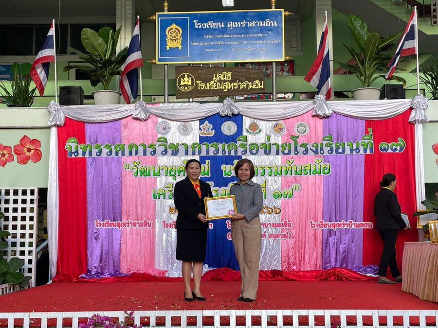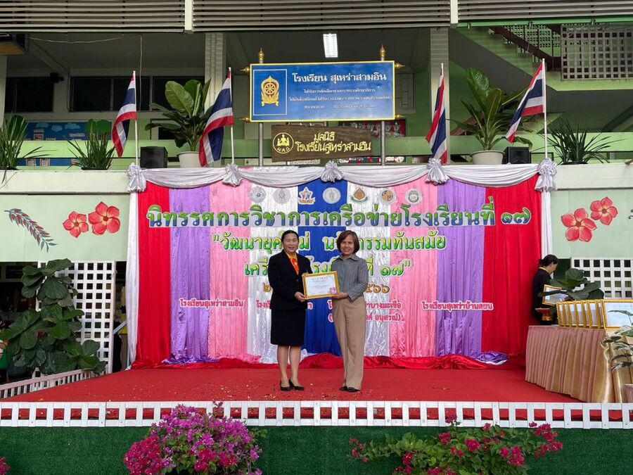 วันที่ 27 ธันวาคม 2566 นางสาวสุชิรา ศิลานนท์ ผู้อำนวยการเขตวัฒนา เป็นประธานในพิธีเปิดนิทรรศการวิชาการ เครือข่ายโรงเรียนที่ 17 โดยมีนางสาวสุทธิรัตน์ ฉัตรทิพา ผู้อำนวยการสถานศึกษา โรงเรียนสุเหร่าบ้านดอน พร้อมด้วยคณะครู และนักเรียนที่ได้รับรางวัลในการเข้าร่วมการประกวดแข่งขันทักษะทางวิชาการ เข้ารับเกียรติบัตร การจัดงานภายใต้แนวคิด S:0