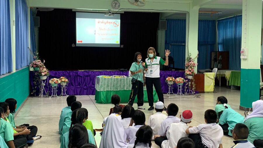 วันศุกร์ ที่ 19 มกราคม 2567 กิจกรรมการอบรมให้ความรู้ เรื่อง การป้องกันยาและสารเสพติดในระดับชั้นประถมศึกษา ชั้น ป.4 -ป.6 โดยเจ้าหน้าที่ศูนย์บริการสาธารณสุข 21 (วัดธาตุทอง) เพื่อสร้างความรู้ความเข้าใจ และทัศนคติให้แก่นักเรียน เกี่ยวกับสถานการณ์ยาเสพติด วิธีการสร้างภูมิคุ้มกันให้กับนักเรียนจะได้ปลอดภัยจากโทษและพิษภัยของยาเสพติด พร้อมกันนี้ได้มีการคัดกรองตรวจหาสารเสพติดในร่างกายนักเรียนในระดับมัธยมศึกษา ม.1 - ม.3 เป็นการตรวจคัดกรองเบื้องต้น เพื่อการดูแล ช่วยเหลือ และคุ้มครองนักเรียนที่เกี่ยวข้องกับยาเสพติด และสามารถบริหารจัดการโรงเรียนให้ปลอดภัยสำหรับนักเรียนทุกคน S:0