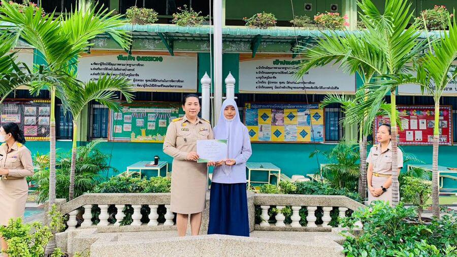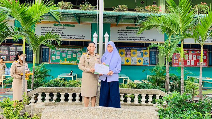 วันจันทร์ ที่ 22 มกราคม 2567 นางสาวสุทธิรัตน์ ฉัตรทิพา ผู้อำนวยการสถานศึกษา โรงเรียนสุเหร่าบ้านดอน มอบรางวัลให้กับห้องเรียนที่ชนะการประกวด กิจกรรม S:0