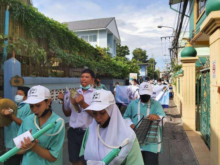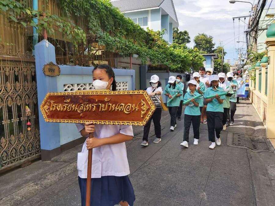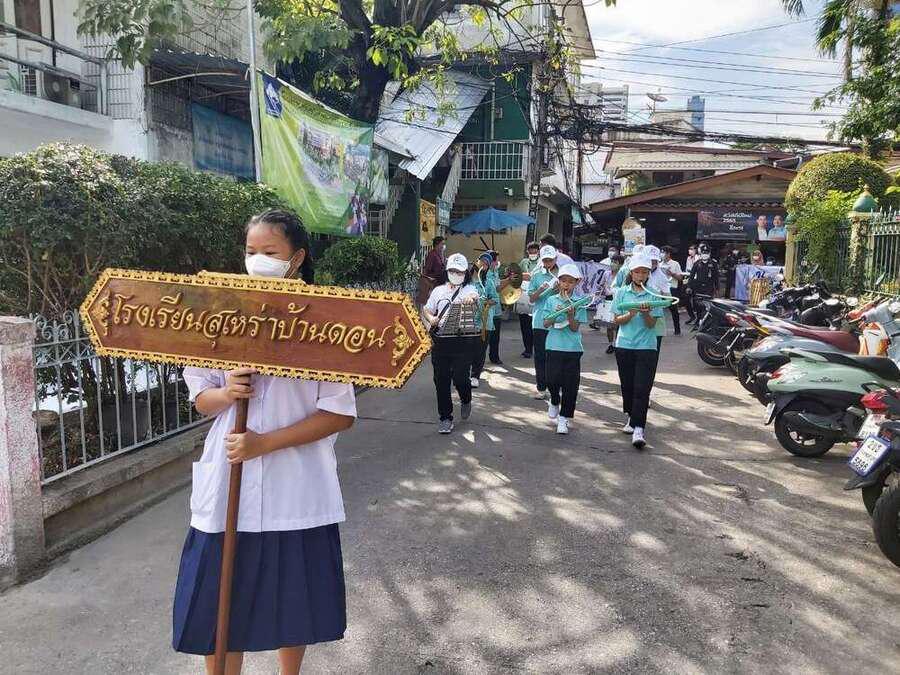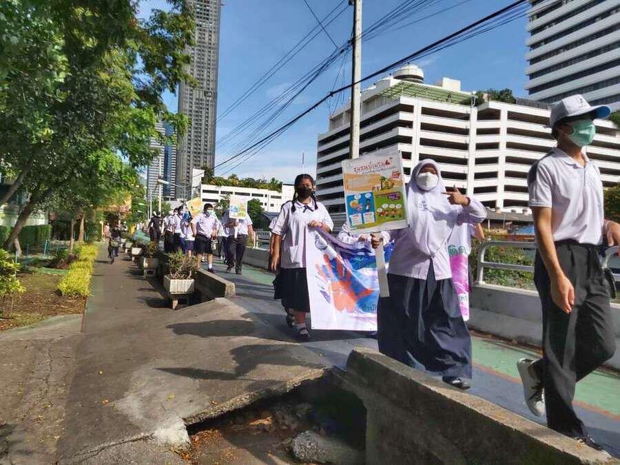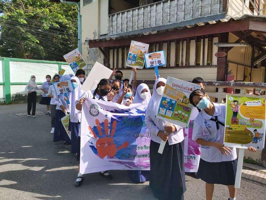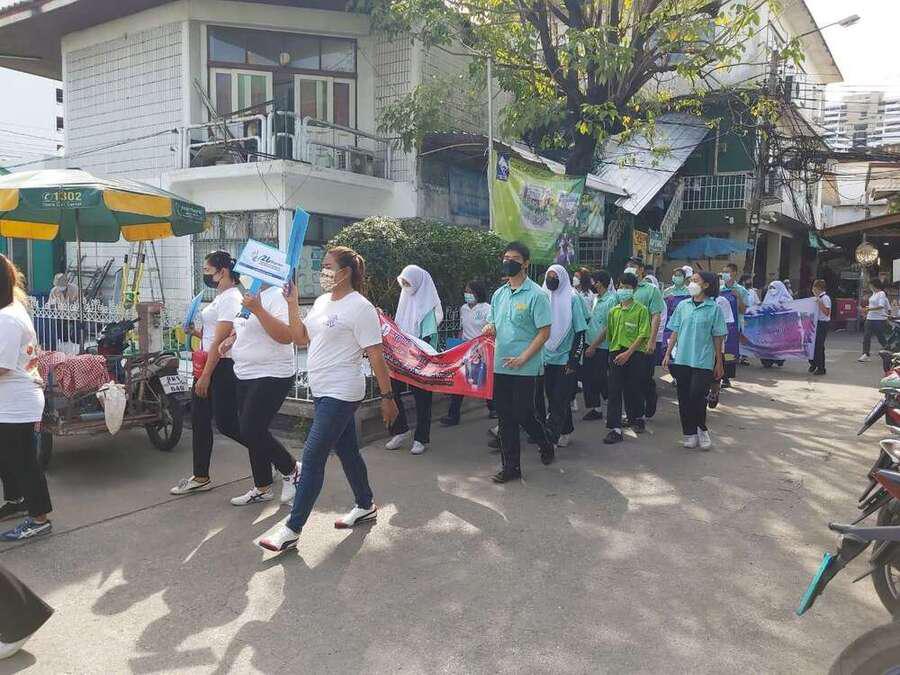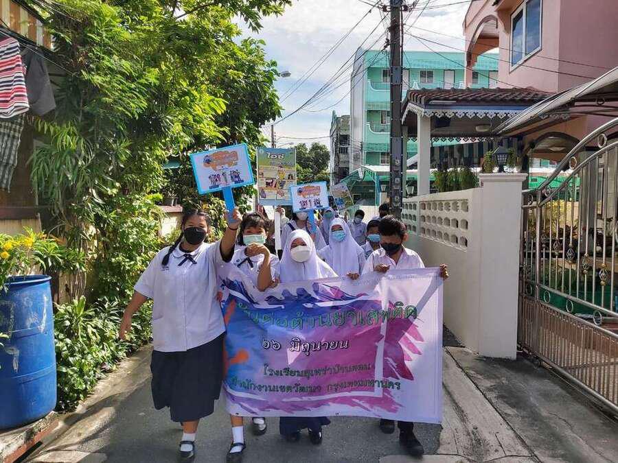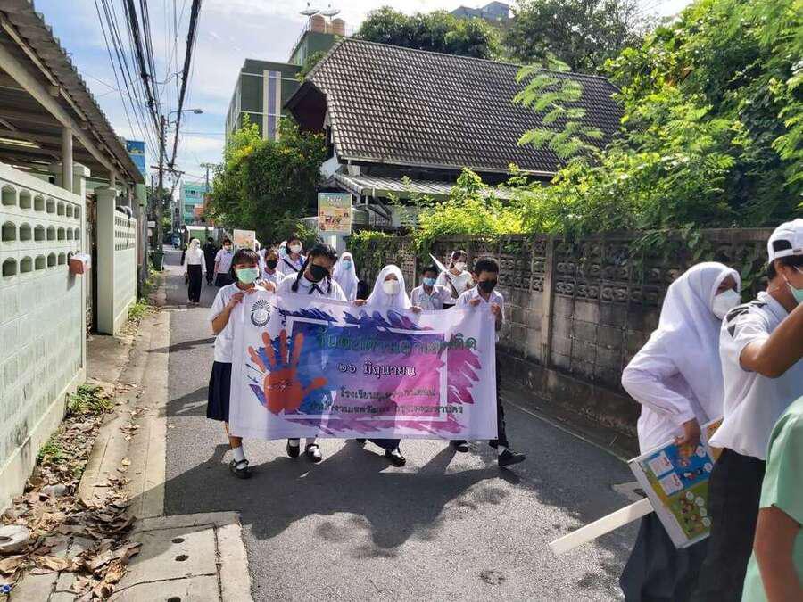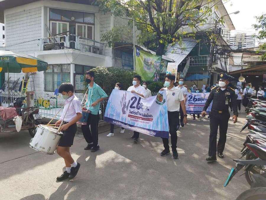 นักเรียน และเจ้าหน้าที่จากสำนักงานเขตวัฒนา ร่วมกันเดินรณรงค์ต่อต้านยาเสพติด ในชุมชนสุเหร่าบ้านดอน S:0