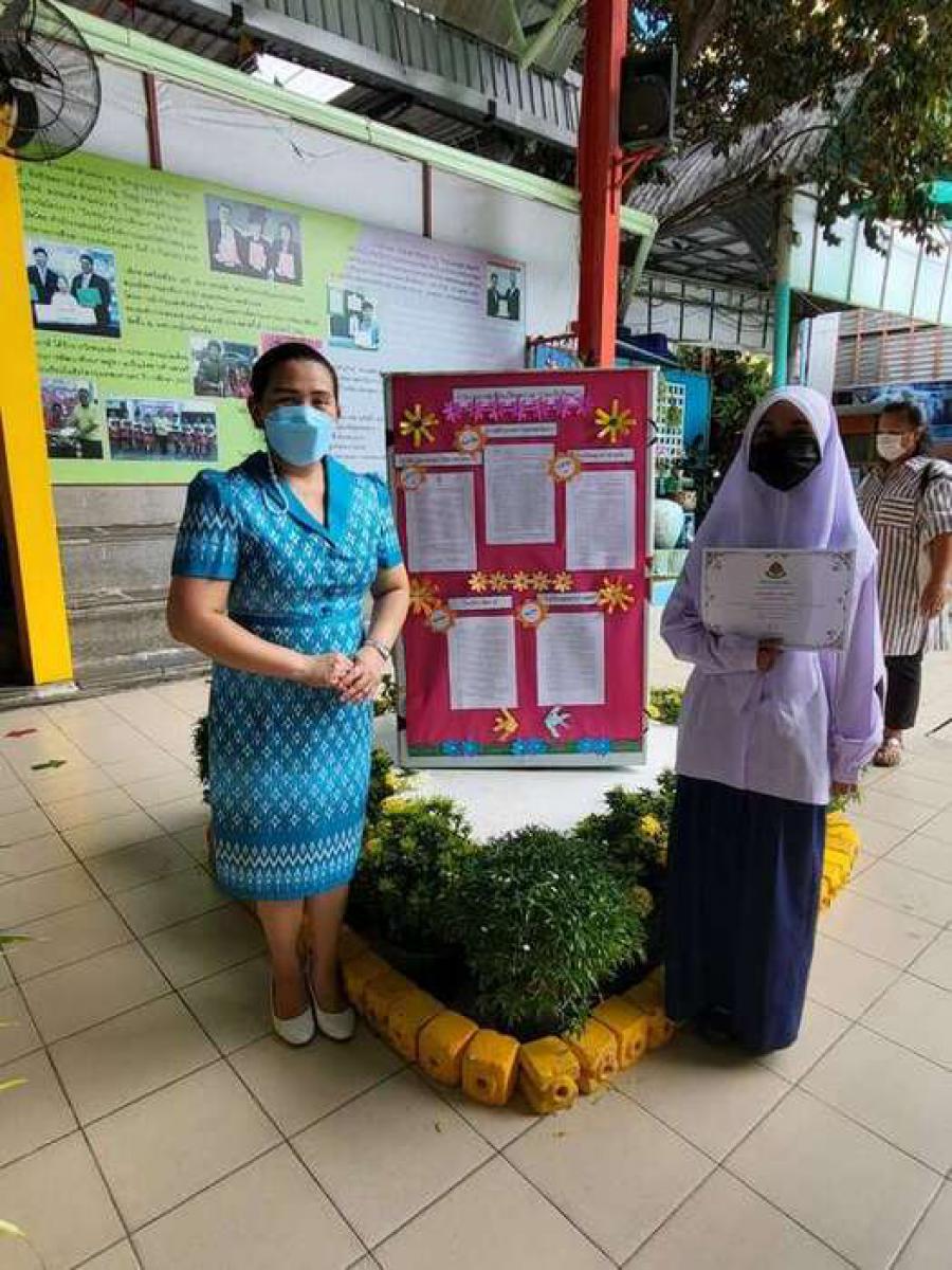 นางสาวสุทธิรัตน์ ฉัตรทิพา ผู้อำนวยการสถานศึกษา โรงเรียนสุเหร่าบ้านดอน คณะครู และตัวแทนนักเรียน เข้าร่วมกิจกรรมและรับมอบรางวัล S:0