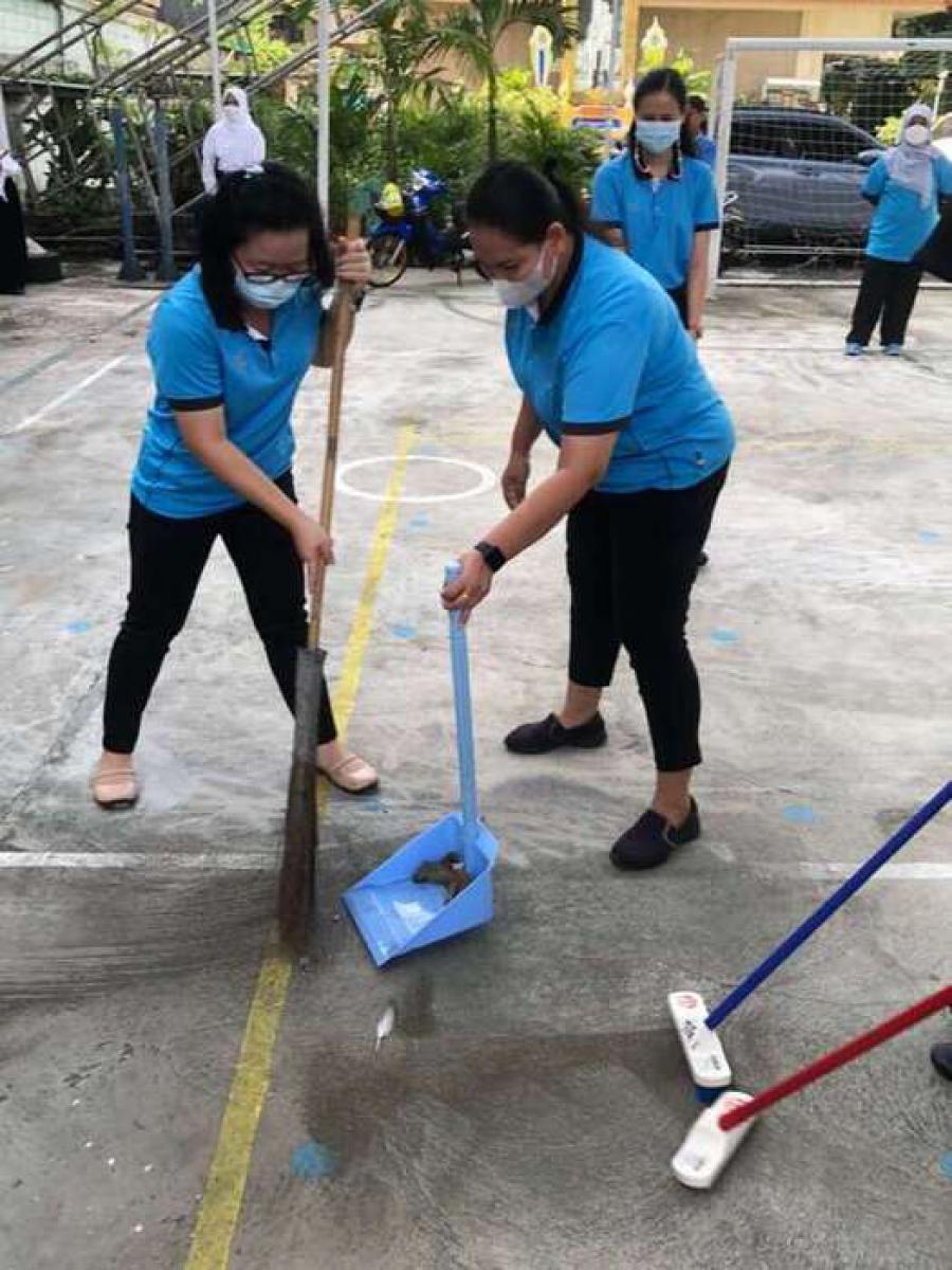 คณะครู-บุคลากร ร่วมกันทำความสะอาดบริเวณต่างๆภายในโรงเรียน S:0