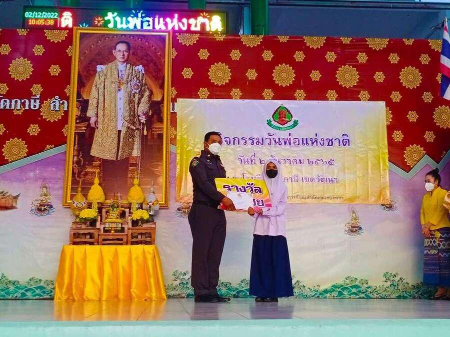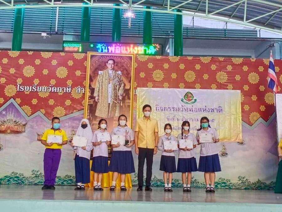 ขอแสดงความยินดีกับนักเรียนคนเก่งของเรา ด.ญ.มณีรัตน์ พรหมเมตตา (ป.5) ด.ญ.ซองนินอู (ป.5) และ ด.ญ.นันทิพร เย็นประสิทธิ์ (ป.6) เข้ารับเกียรติบัตรและถ้วยรางวัล ในการประกวดแข่งขันกิจกรรม วันพ่อแห่งชาติ ประจำปี 2565 จัดโดย สำนักงานเขตวัฒนา ในวันที่ 2 ธันวาคม 2565 ร.ร.วัดภาษี S:0